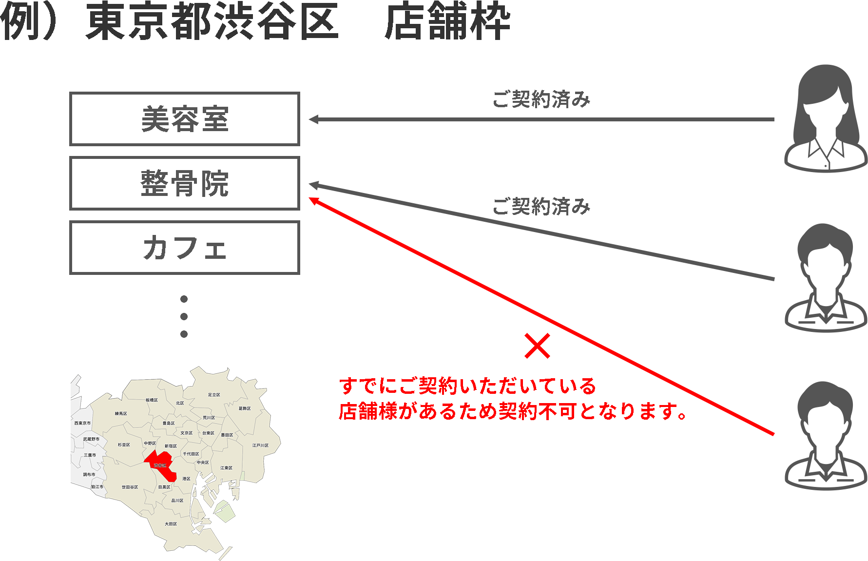 ご契約の店舗様同士が競合し合わないようにご契約可能な枠は限定となっております。