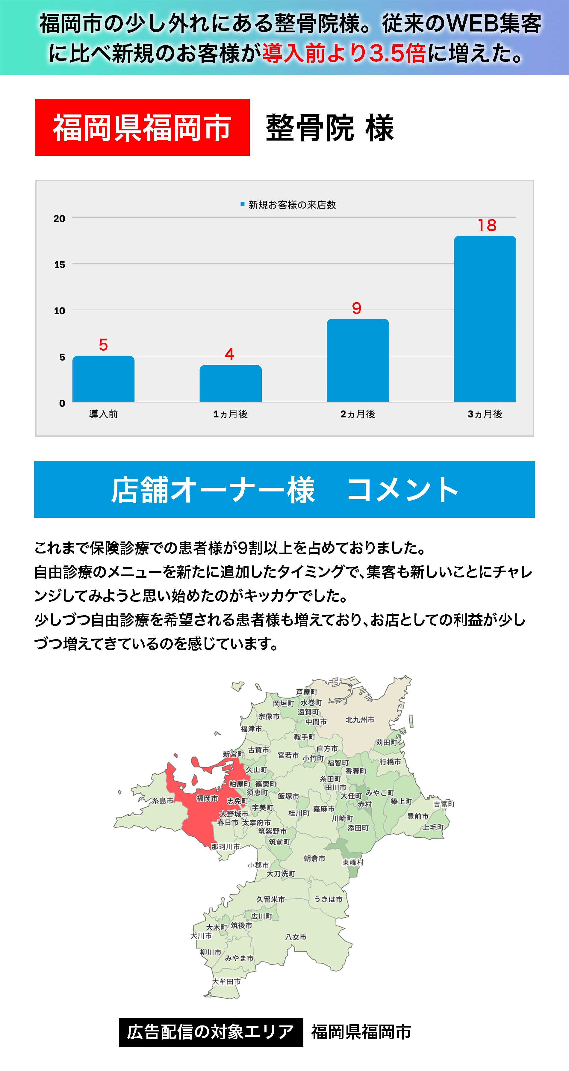 独自のリサーチにて集客用の専用サイトを作成し、広告配信をして見込み客に認知を広げ来店を促します。