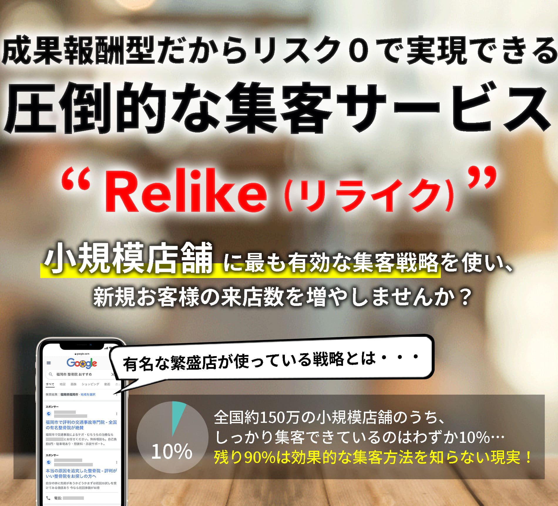 Relikeをご利用いただいている店舗様の集客最大化を実現するために、
